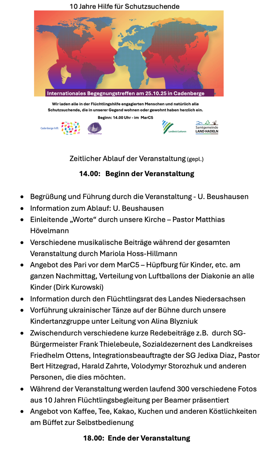 Veranstaltungen/Gruppen der Kirchengemeinde Cadenberge/Wingst