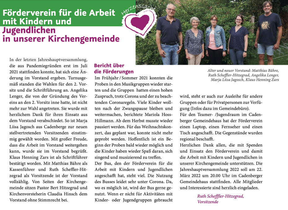 gegründet, um diese Spenden einzuwerben und langfristig die Arbeit mit Kindern und Jugendlichen in unserer Kirchengemeinde zu sichern.