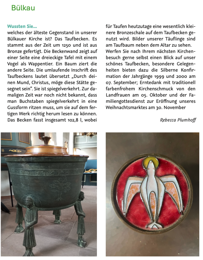 Unter der „Schirmherrschaft“ der Kirchengemeinde findet immer am ersten Advent der Bülkauer Weihnachtsmarkt statt, er beginnt um 11.00 Uhr mit einem Familiengottesdienst in der Kirche.