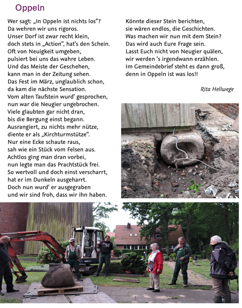 Oppeln ist stolz auf seine Geschichte: 2001 konnte das 700-jährige Jubiläum des Ortes im großen Rahmen gefeiert werden. – In der Mitte des langgestreckten Dorfes steht die kleine alte St.-Nicolaikirche, direkt daneben die ehemalige Schule: Sie beherbergt heute den Kinderspielkreis Kinderspielkreis.